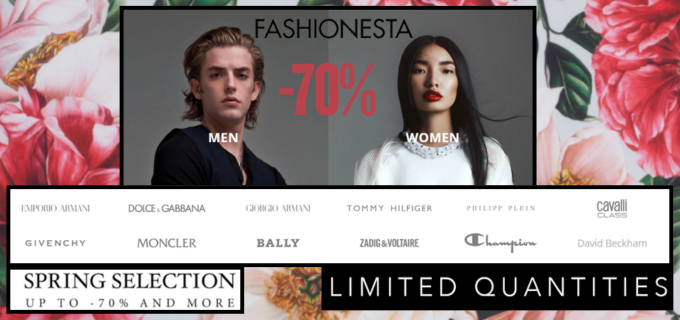 На сайте Fashionesta идет масштабная весенняя распродажа люксовых и премиальных брендов. Это прямые поставки из Европы по ценам аутлета