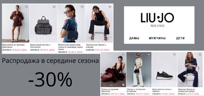 Официальный сайт Liu Jo запустил Mid Season Sale со скидкой -30%